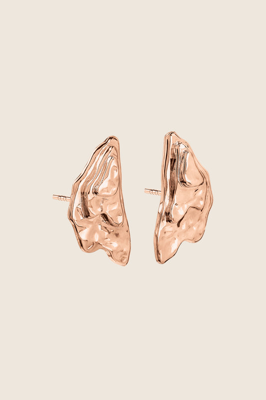 Złote kolczyki-sztyfty FLOS z motywem róży zachwycają wyrazistym, a zarazem eleganckim detalem. Ręcznie wykonane z różowego złota 585, pięknie układają się na uchu i przyciągają wzrok subtelnym blaskiem. Idealne do wieczorowych stylizacji i asymetrycznych zestawień. Poznaj unikatowy styl UMIAR biżuteria i zamów online.