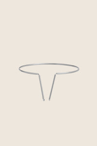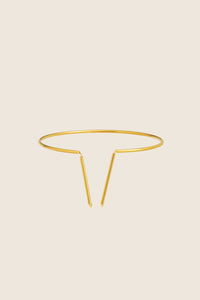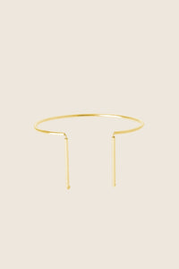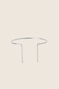 Odkryj delikatną bransoletkę na rękę składającą się z obręczy i dwóch wiszących końcówek, wykonaną ręcznie ze srebra 925 lub pozłacanego 24-karatowym złotem. Model z kolekcji U, inspirowanej minimalizmem, charakteryzującej się prostymi przecinającymi się liniami i geometrycznymi kształtami.