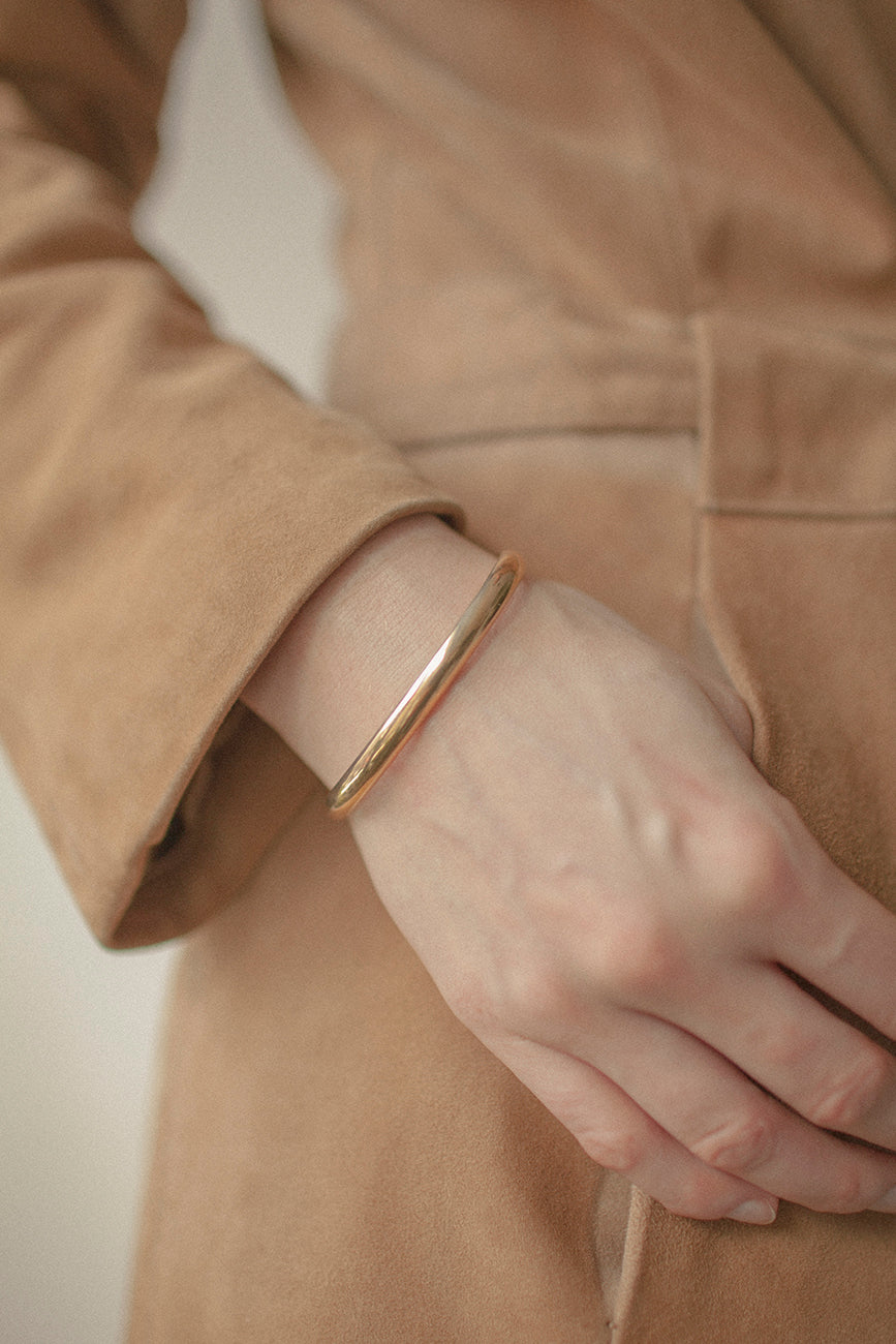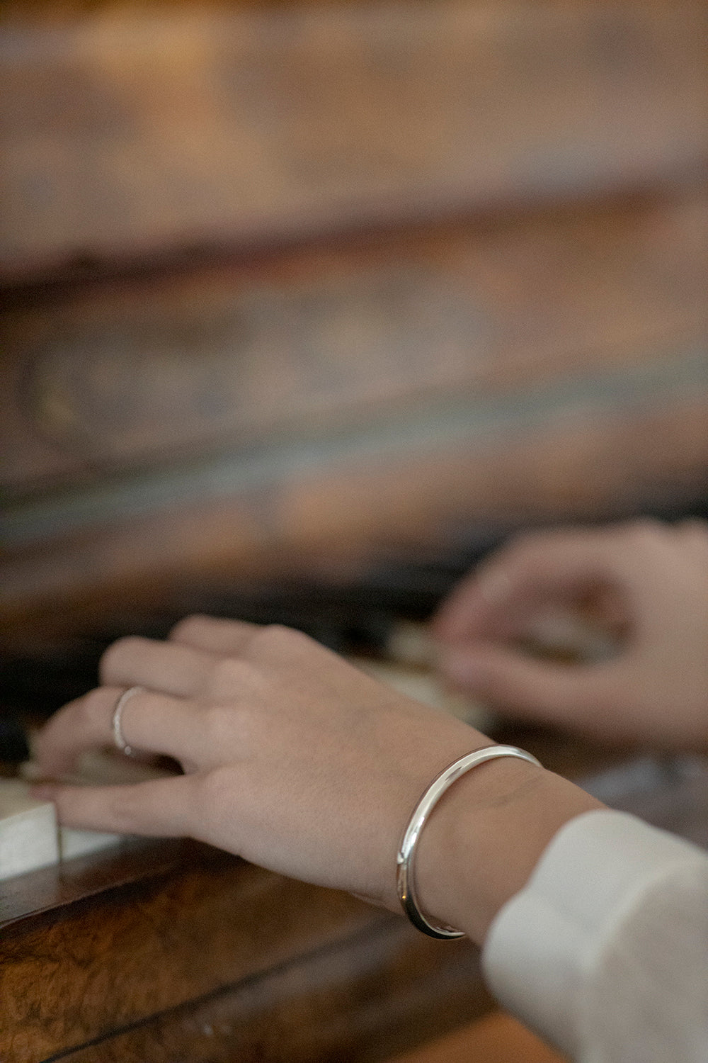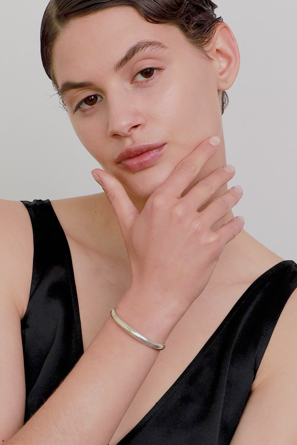 Minimalistyczna bransoletka jest doskonałym przykładem elegancji i prostoty. Wykonana jest ze sztywnej srebrnej rury o charakterystycznym przekroju półkola, co nadaje jej unikalny wygląd.