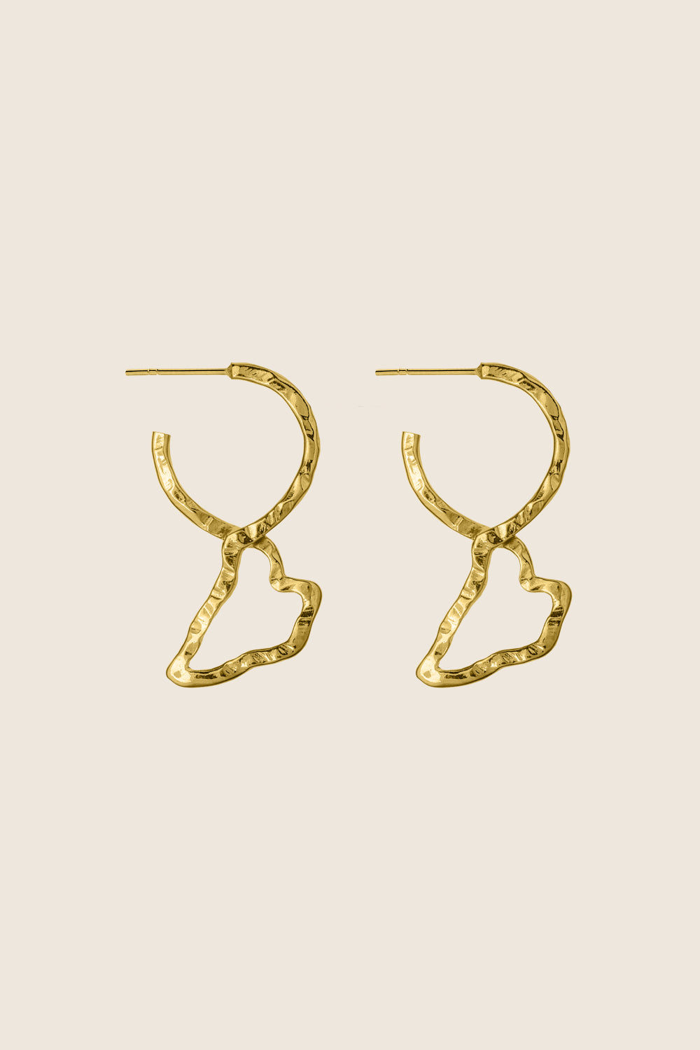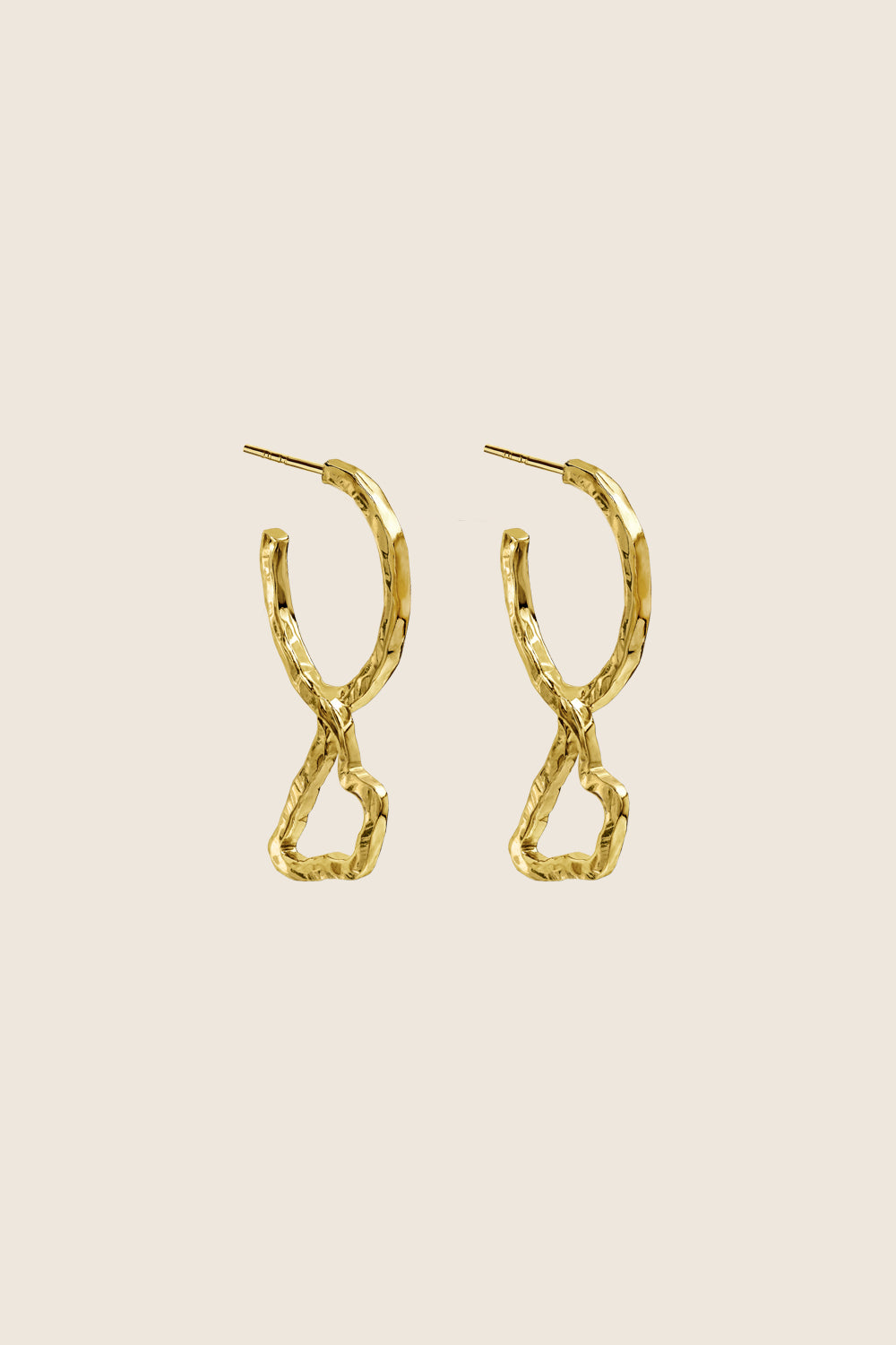 Kolczyki koła płynnie przechodzące w kontur jednego ze wzniesień Capri. Nieregularna faktura, inspirowana topografią wyspy, pięknie odbija światło. Długość: 33 mm. Średnica koła: 13 mm.