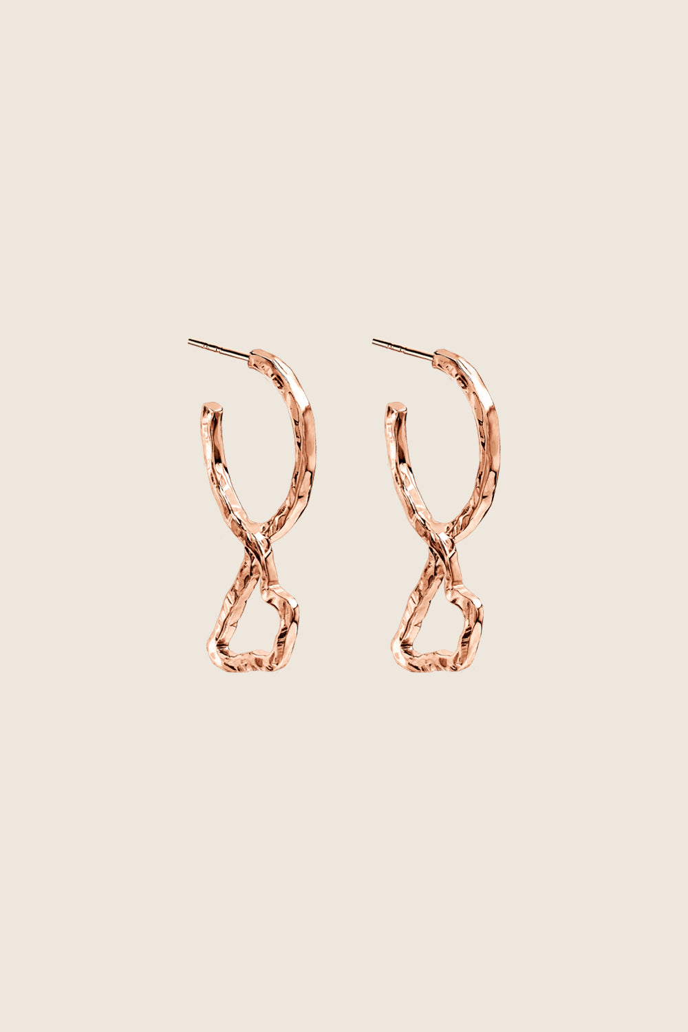 Kolczyki koła płynnie przechodzące w kontur jednego ze wzniesień Capri. Nieregularna faktura, inspirowana topografią wyspy, pięknie odbija światło. Długość: 33 mm. Średnica koła: 13 mm.