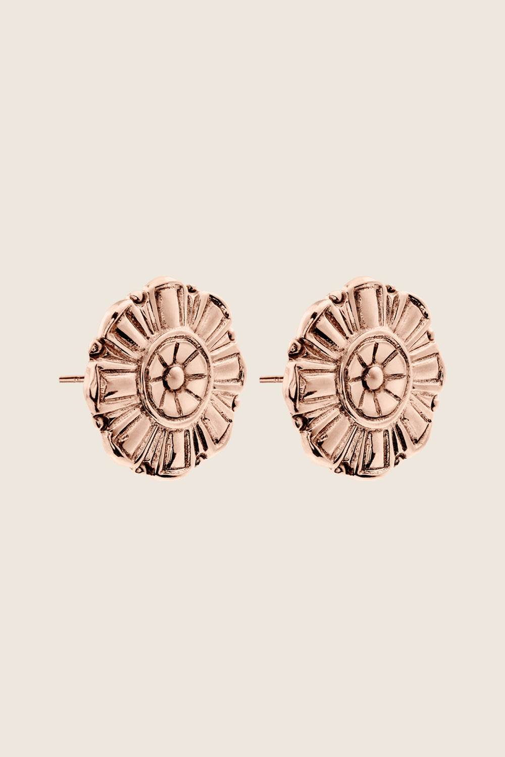 Dekoracyjne kolczyki na sztyfcie w kształcie kwiatów. Średnica kolczyków: 27 mm. Pasują zarówno do codziennych, jak i eleganckich stylizacji.