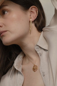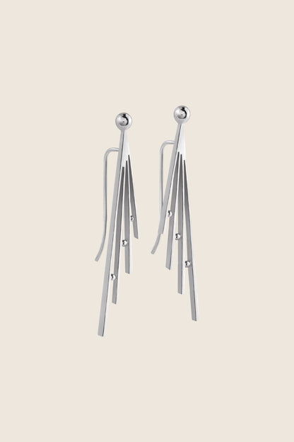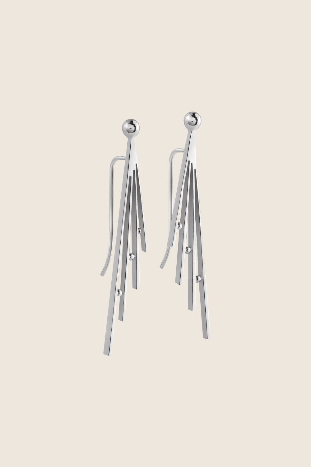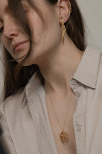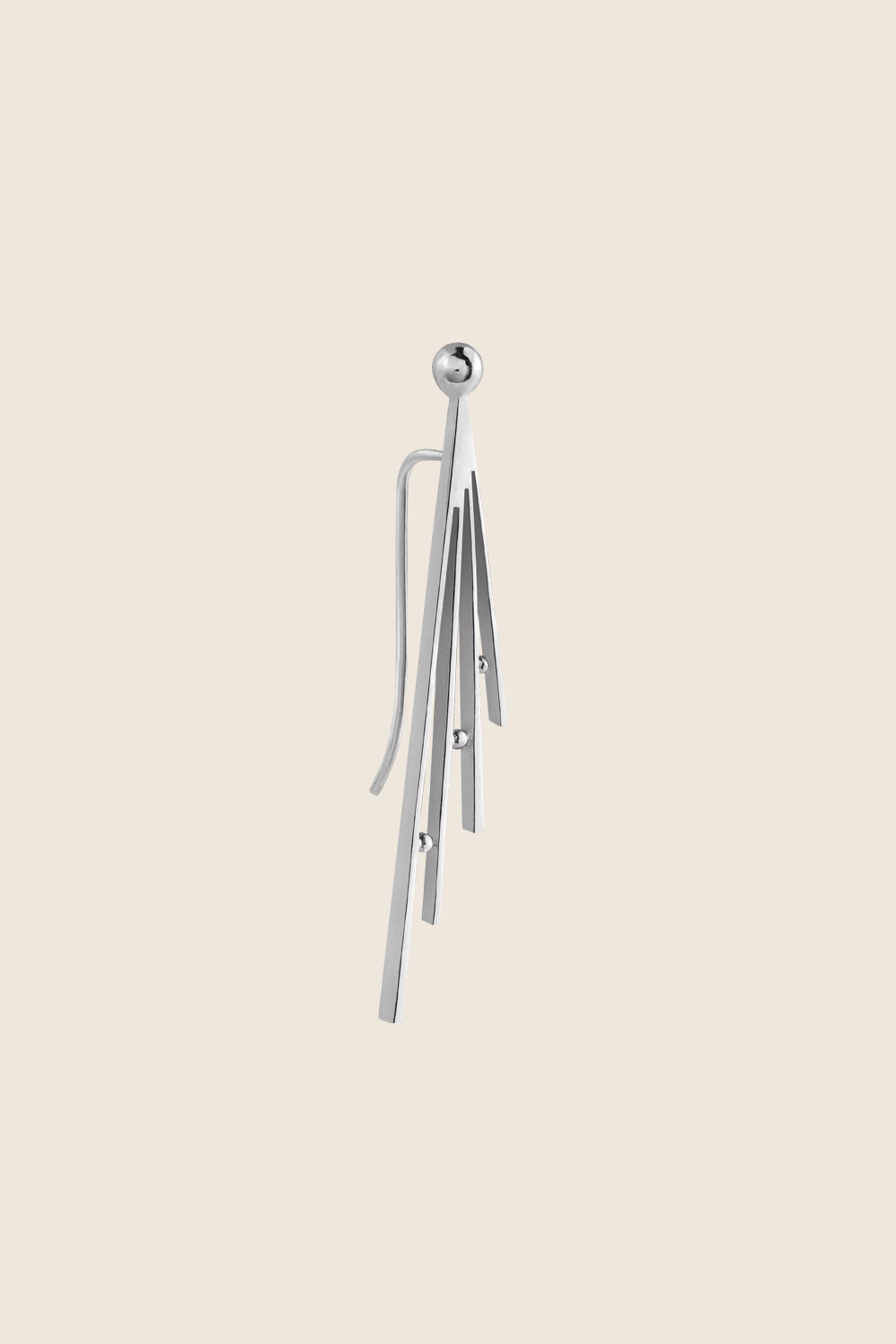 Kolczyki ze sztyftem z cienkiego drucika do przekładania przez dziurkę. Kolczyki mogą być noszone na dwa sposoby – leżące na płatku ucha lub jako element wiszący. Rozmiar kolczyków 55 x 10 mm.