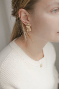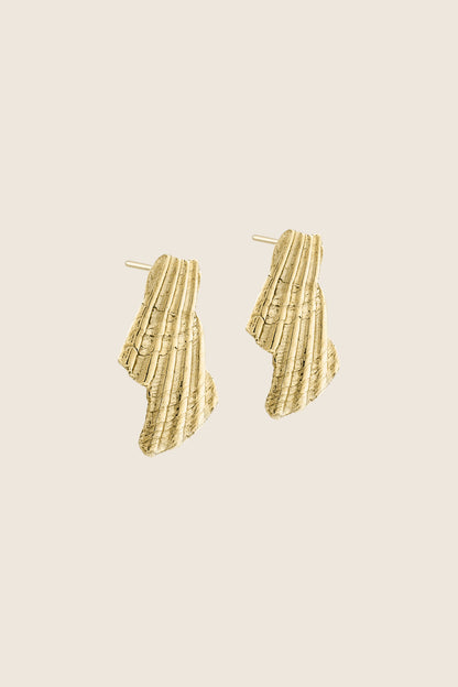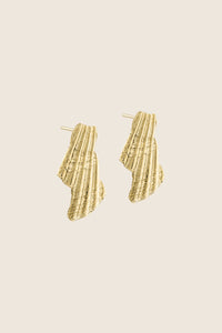 Wyraziste kolczyki na sztyfcie w kształcie połamanych muszelek. Wymiar kolczyków 15 x 29 mm. Idealne dopełnienie letnich stylizacji.