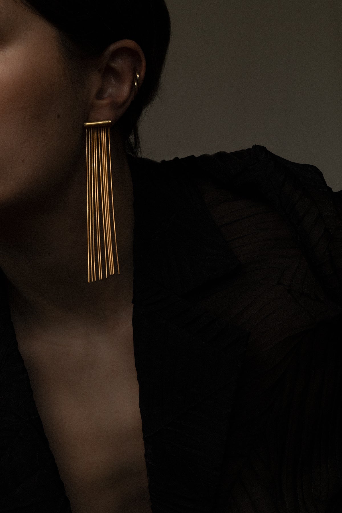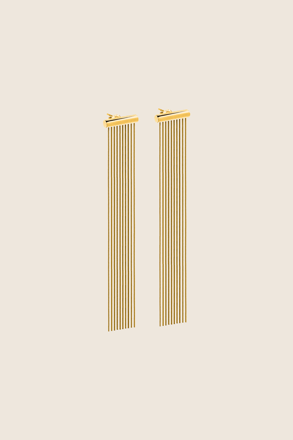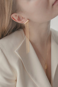 Długie, dekoracyjne kolczyki na sztyfcie przyciągają wzrok swoimi wiszącymi łańcuszkami, które pięknie poruszają się wraz z każdym ruchem. Stanowią elegancki dodatek do każdej stylizacji.