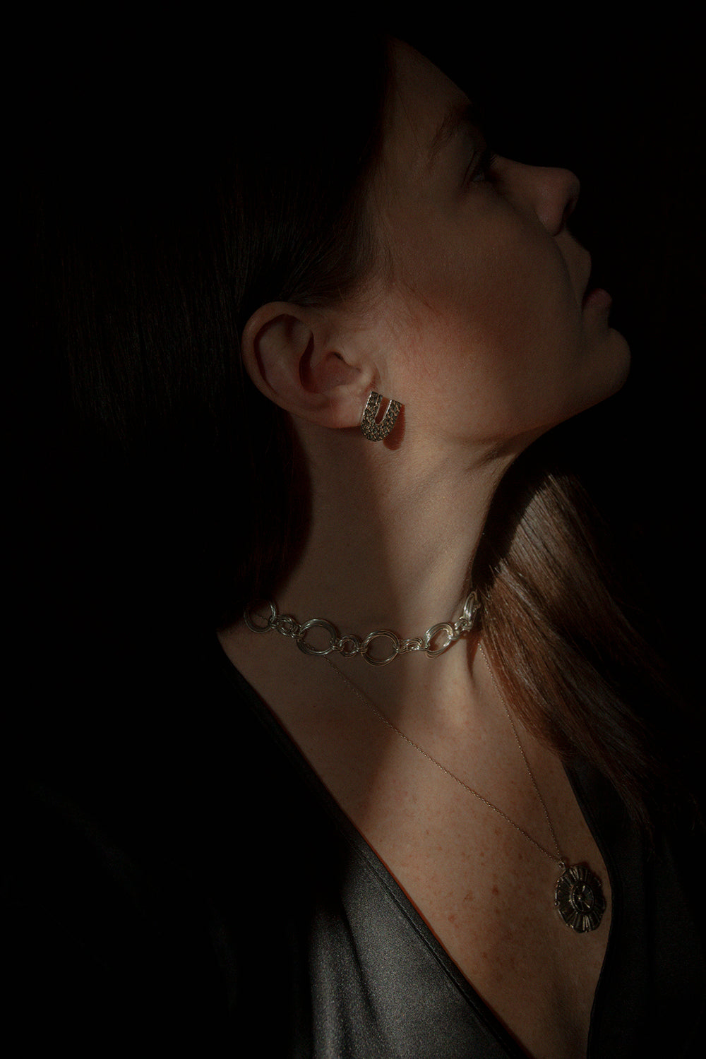 Model pochodzi z kolekcji WIĘZI, inspirowanej chęcią tworzenia jednoczących emocji. Istotę kolekcji oddają zastosowane w niej materiały i tradycyjne techniki rzemieślnicze: ażurowe struktury i łańcuchy wyplecione ręcznie w naszej pracowni z setek małych ogniw. WIĘZI to biżuteria dla niej i dla niego; zaprojektowana z myślą o połączeniach, dzięki którym może powstać coś pełnego i pięknego.