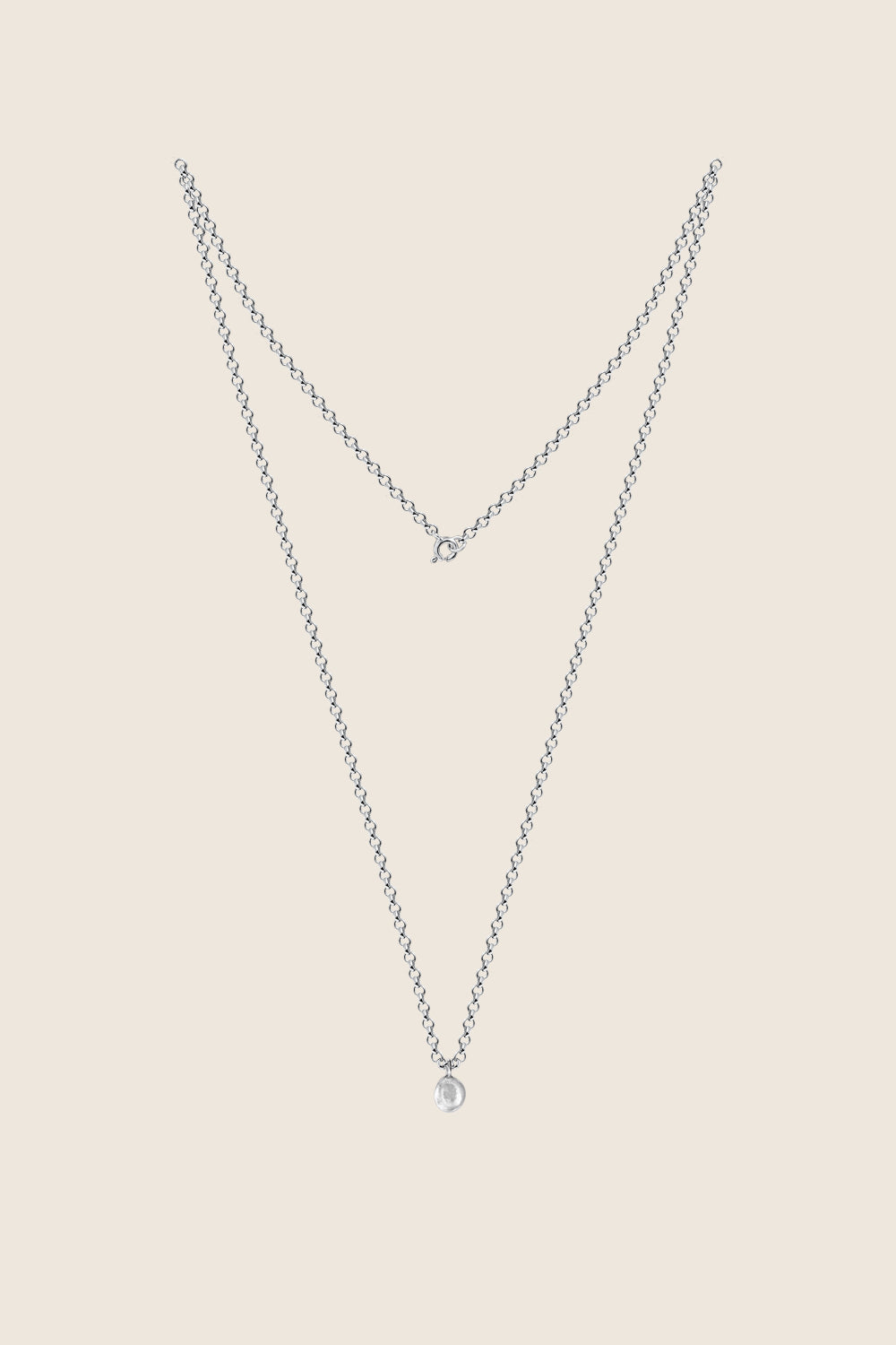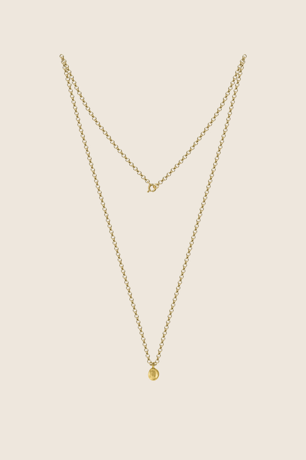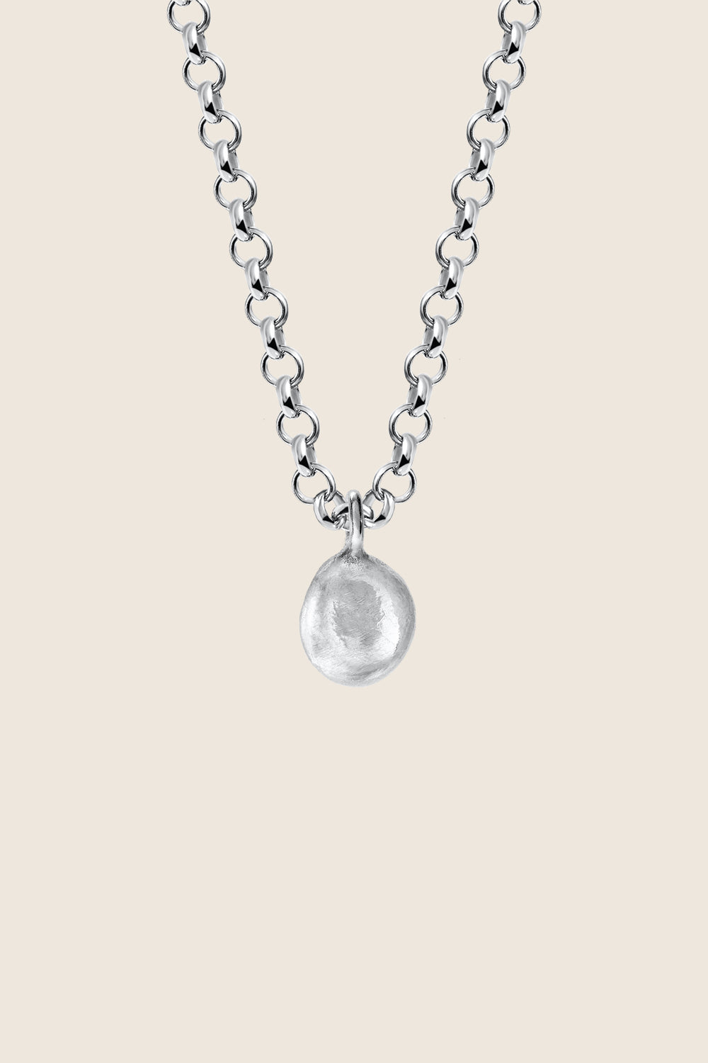 Wyjątkowy wisiorek o nieregularnym kształcie przypominającym kroplę, zawieszony na łańcuszku o długości 50 cm. Każdy egzemplarz może się minimalnie różnić, co nadaje mu unikalny charakter.