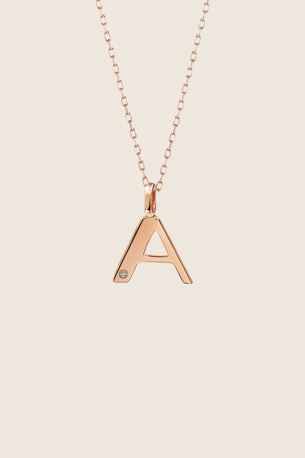 Subtelny wisiorek na łańcuszku w kształcie litery A, inkrustowany naturalnym brylantem o masie 0,007 ct (1,2 mm). Naszyjnik z literą to świetny sposób na uhonorowanie bliskiej osoby. Dzięki dodatkowi diamentu prezent zyskuje szczególny charakter, elegancki kształt i proporcja sprawiają zaś, że naszyjnik nigdy nie wyjdzie z mody. Delikatny i klasyczny inicjał to wyjątkowa pamiątka, która wspaniale podkreśla osobisty urok i moc każdego imienia. Wysokość zawieszki wraz z okiem: ok. 15 mm. Długość łańcuszka: 50 cm