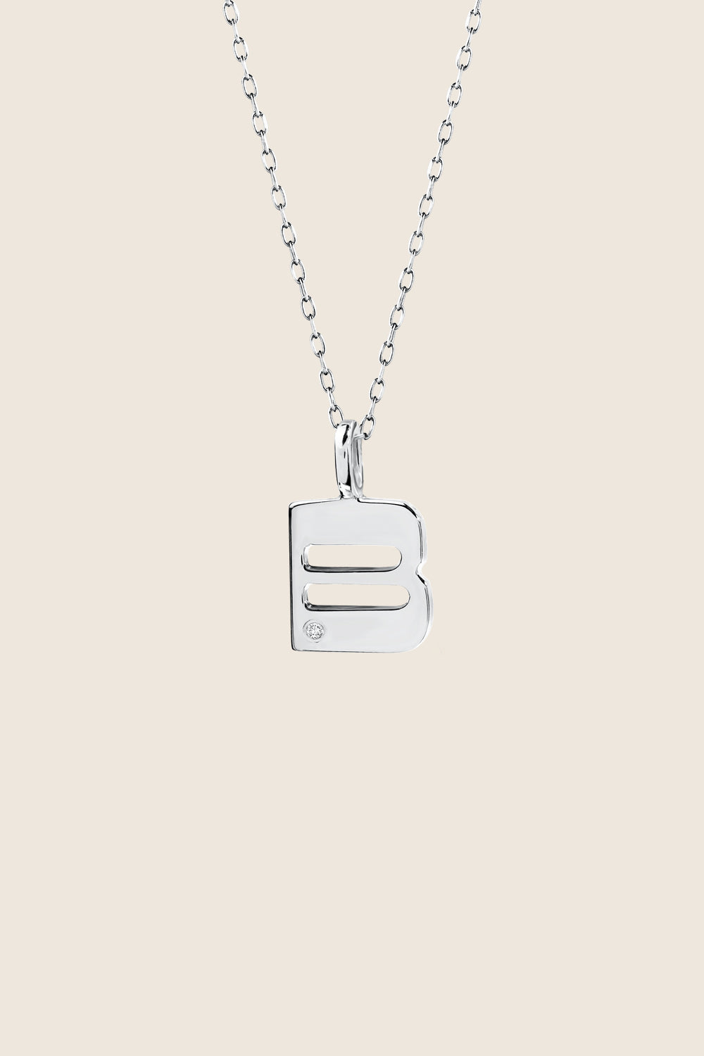 Subtelny wisiorek na łańcuszku w kształcie litery B, inkrustowany naturalnym brylantem o masie 0,007 ct (1,2 mm). Naszyjnik z literą to świetny sposób na uhonorowanie bliskiej osoby. Dzięki dodatkowi diamentu prezent zyskuje szczególny charakter, elegancki kształt i proporcja sprawiają zaś, że naszyjnik nigdy nie wyjdzie z mody. Delikatny i klasyczny inicjał to wyjątkowa pamiątka, która wspaniale podkreśla osobisty urok i moc każdego imienia. Wysokość zawieszki wraz z okiem: ok. 15 mm. Długość łańcuszka: 50 cm