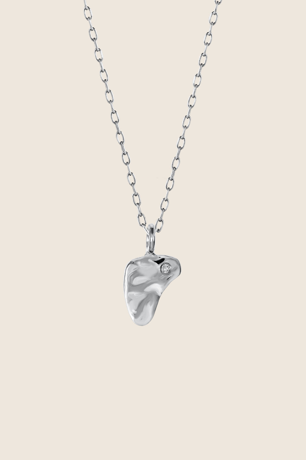 Subtelny, drobny wisiorek na łańcuszku inspirowany topografią wyspy Capri. Młotkowana, nieregularna faktura wspaniale rozprasza światło, przyciągając wzrok. Inkrustacja naturalnym brylantem o masie 0,007 ct (1,2 mm), sprawia, że naszyjnik JUGO ARDA doskonale sprawdzi się jako wyjątkowy, elegancki prezent. Długość łańcuszka: 50 cm. Wymiary zawieszki: 8 x 9 mm.