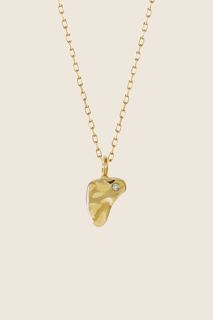 Subtelny, drobny wisiorek na łańcuszku inspirowany topografią wyspy Capri. Młotkowana, nieregularna faktura wspaniale rozprasza światło, przyciągając wzrok. Inkrustacja naturalnym brylantem o masie 0,007 ct (1,2 mm), sprawia, że naszyjnik JUGO ARDA doskonale sprawdzi się jako wyjątkowy, elegancki prezent. Długość łańcuszka: 50 cm. Wymiary zawieszki: 8 x 9 mm.