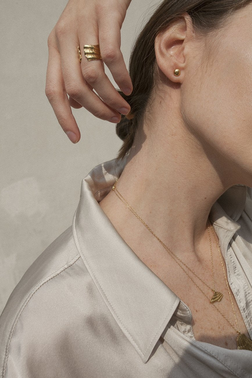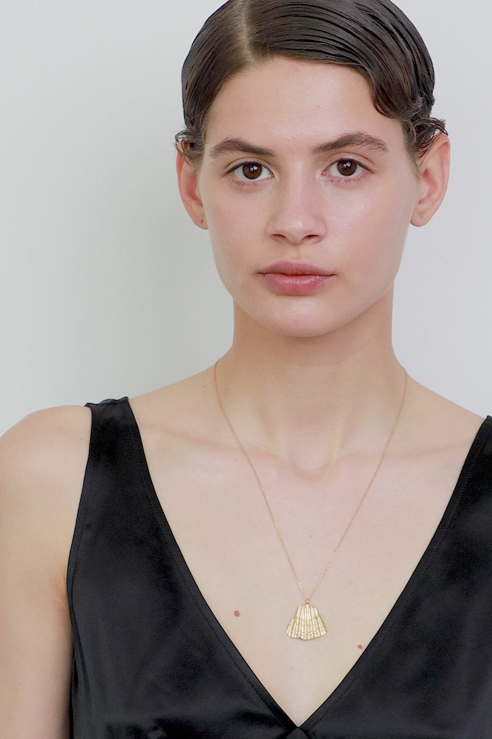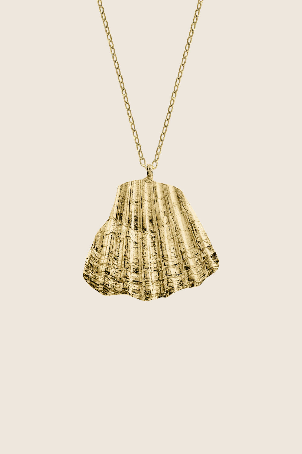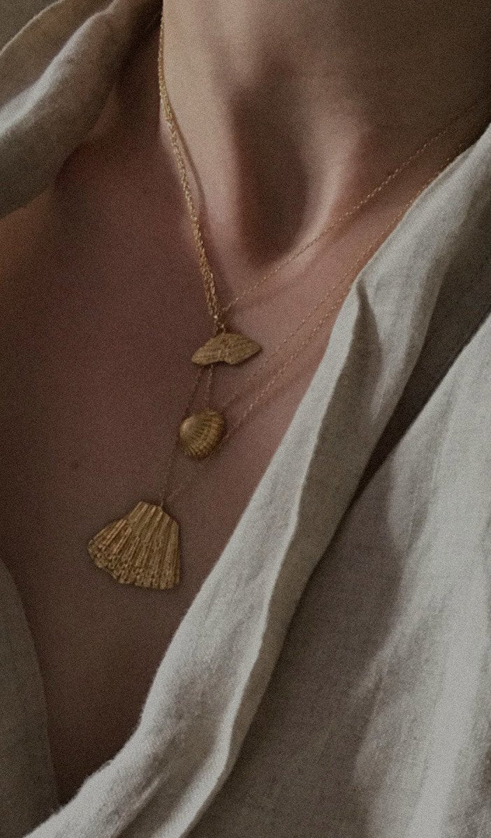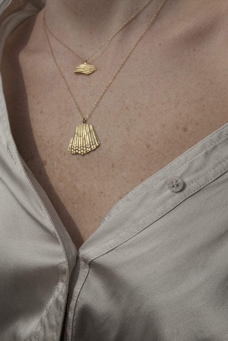 Elegancki wisiorek w kształcie dużej, połamanej muszli (25 x 25 mm) zawieszony na subtelnym łańcuszku o długości 50 cm. Organiczna, naturalna faktura pięknie kontrastuje z uproszczonym, minimalistycznym kształtem. Idealny do wakacyjnych stylizacji. Naszyjnik doskonale wygląda noszony solo lub w zestawie z mniejszym modelem MARE I.
