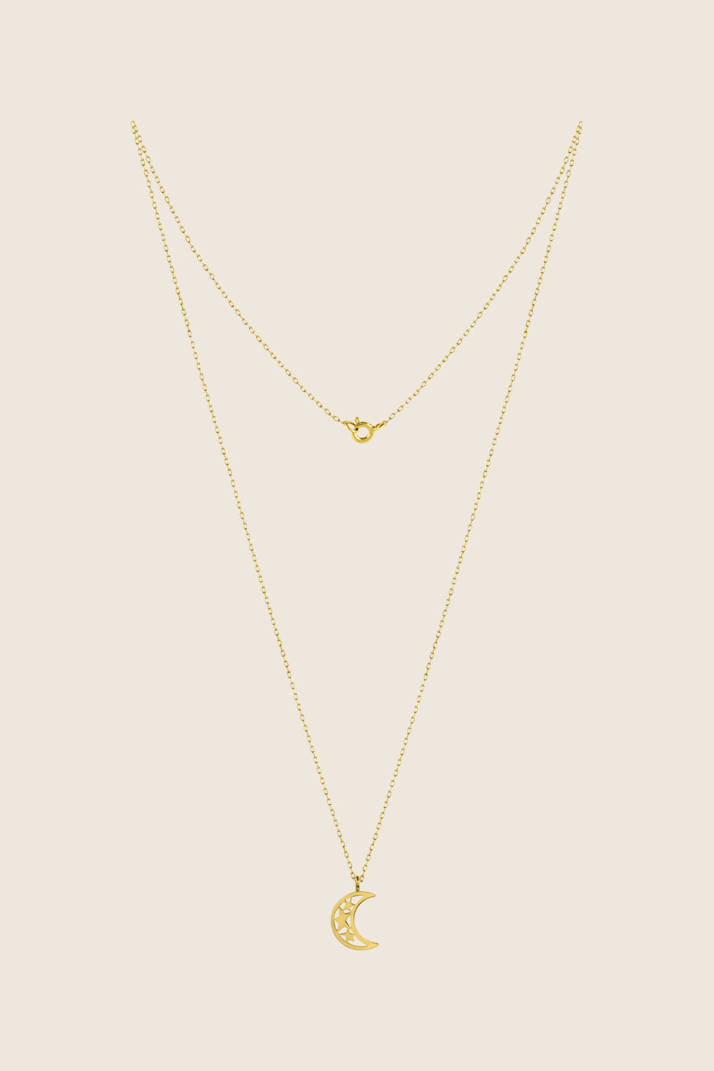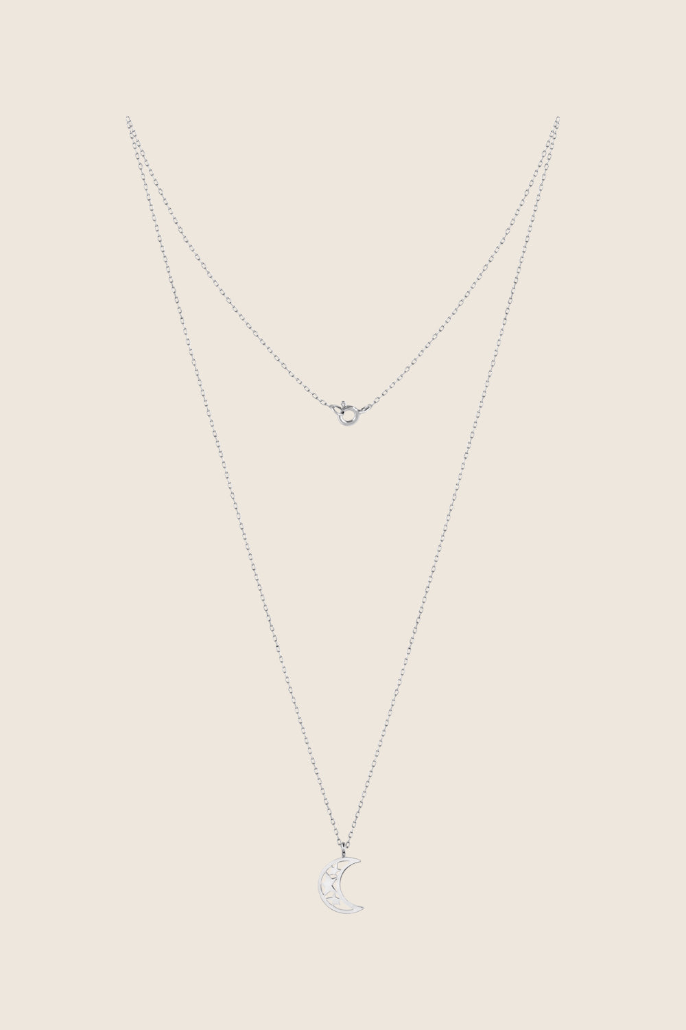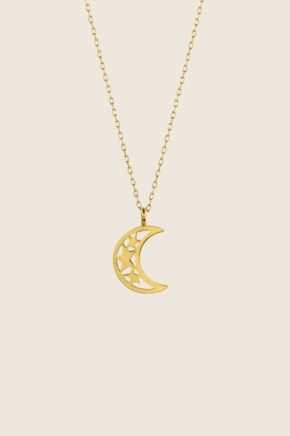 Wisiorek w kształcie księżyca zawieszony na łańcuszku o długości 50 cm. Rozmiar wisiorka 17 x 14 mm.