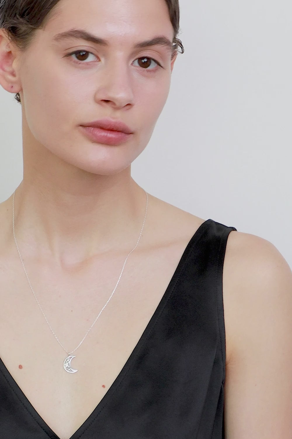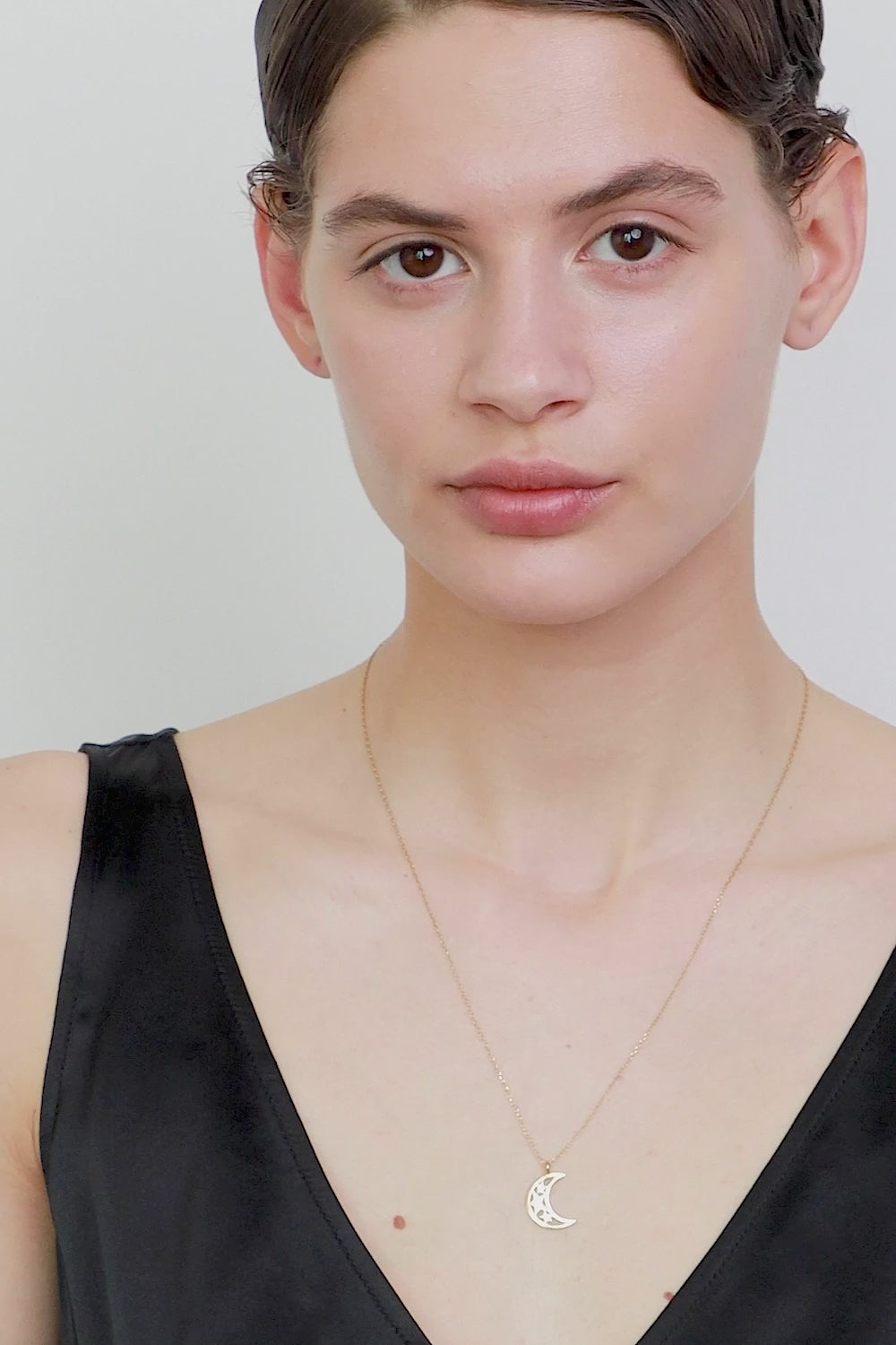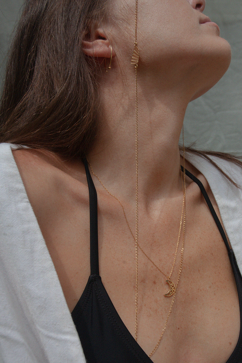Wisiorek w kształcie księżyca zawieszony na łańcuszku o długości 50 cm. Rozmiar wisiorka 17 x 14 mm.