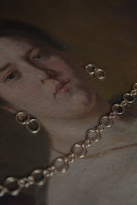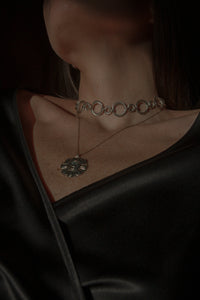 Wyjątkowy choker typu łańcuch, wykonany ręcznie z setek delikatnych ogniw, charakteryzuje się elegancją i subtelnością. Długość naszyjnika wynosi 42 cm, idealnie dopasowując się do szyi.