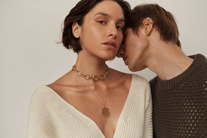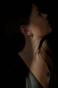 Model pochodzi z kolekcji WIĘZI inspirowanej chęcią tworzenia jednoczących emocji. Istotę kolekcji oddają zastosowane w niej materiały i tradycyjne techniki rzemieślnicze: ażurowe struktury i łańcuchy wyplecione ręcznie w naszej pracowni z setek małych ogniw. WIĘZI to biżuteria dla niej i dla niego; zaprojektowana z myślą o połączeniach, dzięki którym może powstać coś pełnego i pięknego.
