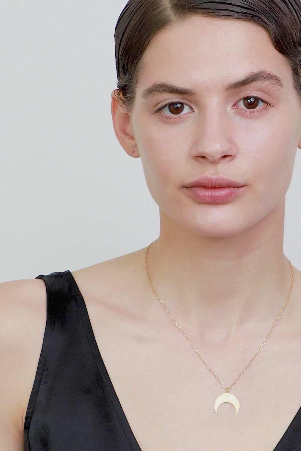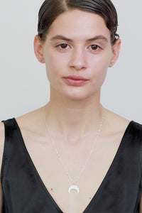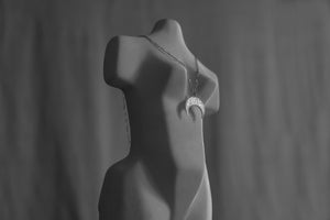 Ozdobny wisiorek lunula w kształcie księżyca zawieszony na łańcuszku o długości 50 cm. Wertykalna forma zawieszki nawiązuje do rzymskiej lunuli, starożytnego symbolu kobiecości i szczęścia. Dekoracyjnie zdobiony awers doskonale współgra z elegancką proporcją wisiorka. Rozmiar wisiorka: 22 x 18 mm. Idealny dodatek, który łączy historyczny symbolizm z nowoczesnym designem.