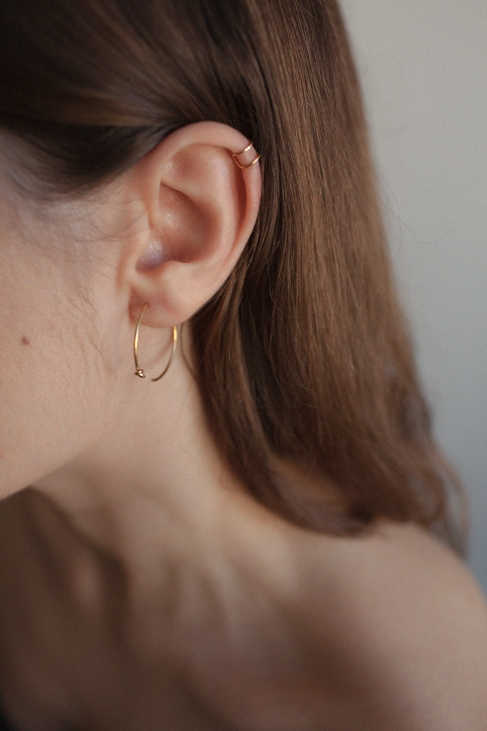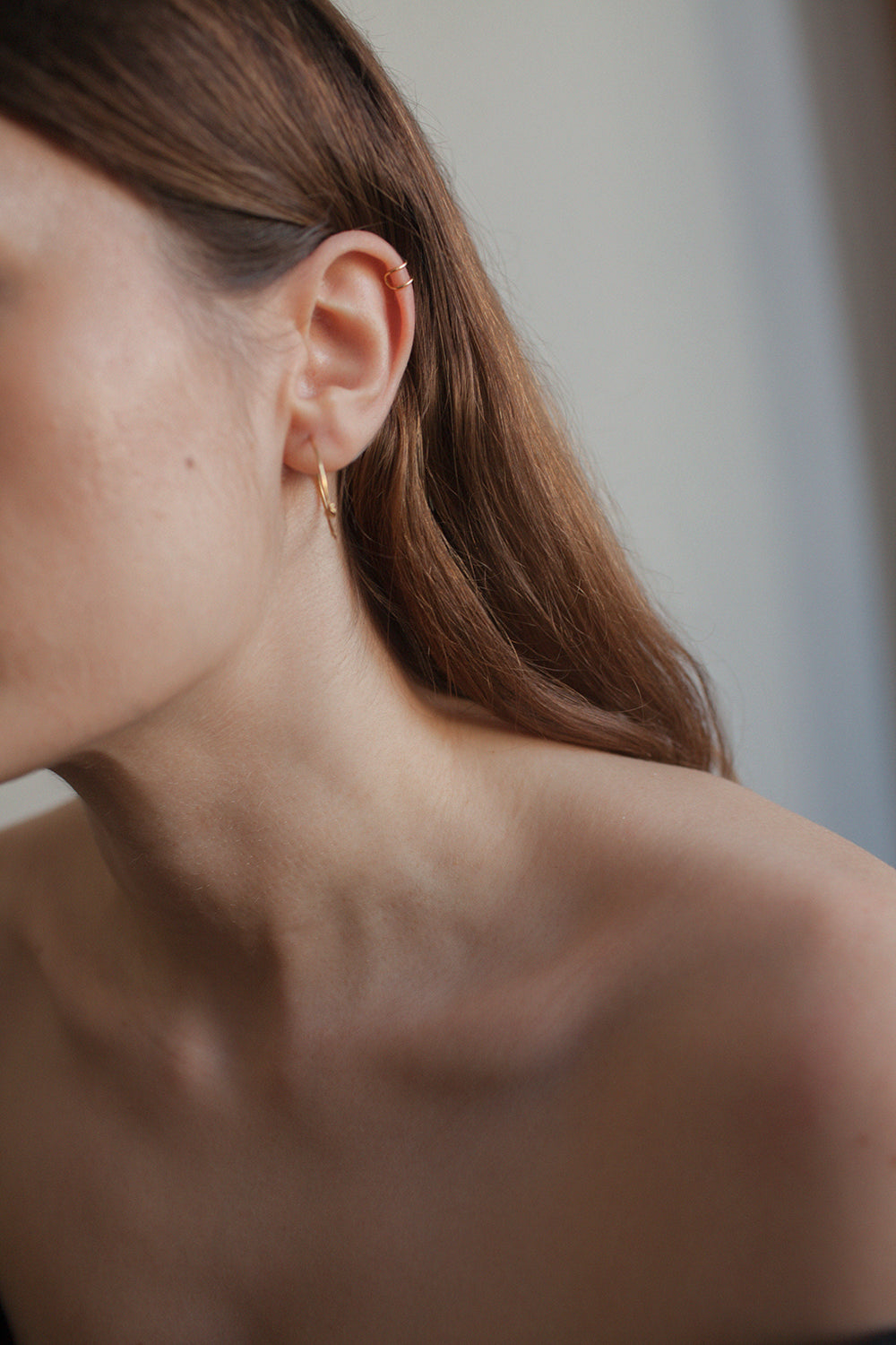Ręcznie wykonana nausznica ze srebrnego pręta w kształcie zdwojonej litery C. Ten delikatny element biżuterii jest przeznaczony do noszenia na górnej części ucha, dodając subtelnej elegancji i nowoczesnego stylu każdej stylizacji.