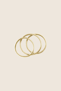 Zestaw trzech delikatnych obrączek, które można nosić w klasyczny sposób pojedynczo lub na kłykciach. Te eleganckie i subtelne obrączki doskonale komponują się ze sobą, pozwalając na różnorodne stylizacje. Idealny wybór dla osób ceniących minimalistyczny design i wszechstronność biżuterii. Szerokość obrączki wynosi 1,5 mm.
