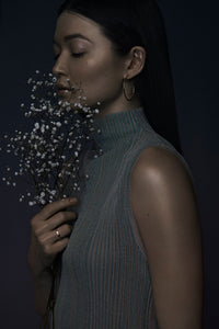Model pochodzi z kolekcji MUUN, której inspiracją był fascynujący wygląd Księżyca pełen niezwykłych faktur, kształtów i formacji. Charakterystyczne dla kolekcji młotkowane srebro oraz wzory nakrapiane srebrnymi granulkami, przypominają kratery widoczne na powierzchni Księżyca.