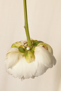 Elegancki pierścionek w kształcie zdwojonych półkręgów okalających dużą, naturalną perłę. Klasyczny, ponadczasowy wzór, który łączy wyrazistą formę, z prostotą i subtelną lekkością prześwitów. Design piękny i mocny, a zarazem minimalistyczny. Wysokość: ok. 10,5 mm.