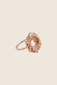 Duży, elegancki pierścionek-kwiat o średnicy 20 mm. Ponadczasowy, florystyczny motyw w nowoczesnym wydaniu. Doskonale wygląda solo, noszony jako dominanta i jedyna ozdoba dłoni. Pasuje również do wszystkich minimalistycznych pierścionków marki, tworząc intrygujący kontrast.