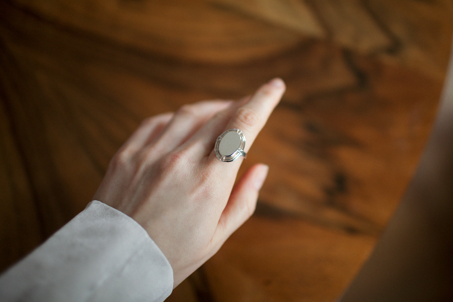 Dekoracyjny, owalny pierścionek-koszyczek zaprojektowany w duchu vintage. Elegancka forma nawiązuje do ponadczasowego uroku biżuterii sprzed lat. Część przednia, polerowana na gładko, nadaje całości minimalistyczny, współczesny charakter. Pierścionek świetnie wygląda zarówno na palcu serdecznym, jak i wskazującym. Możesz go dowolnie łączyć z modelami z kolekcji – polecamy zwłaszcza wszystkie typy obrączek. Wysokość: 20 mm.