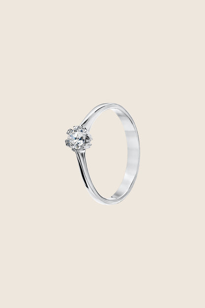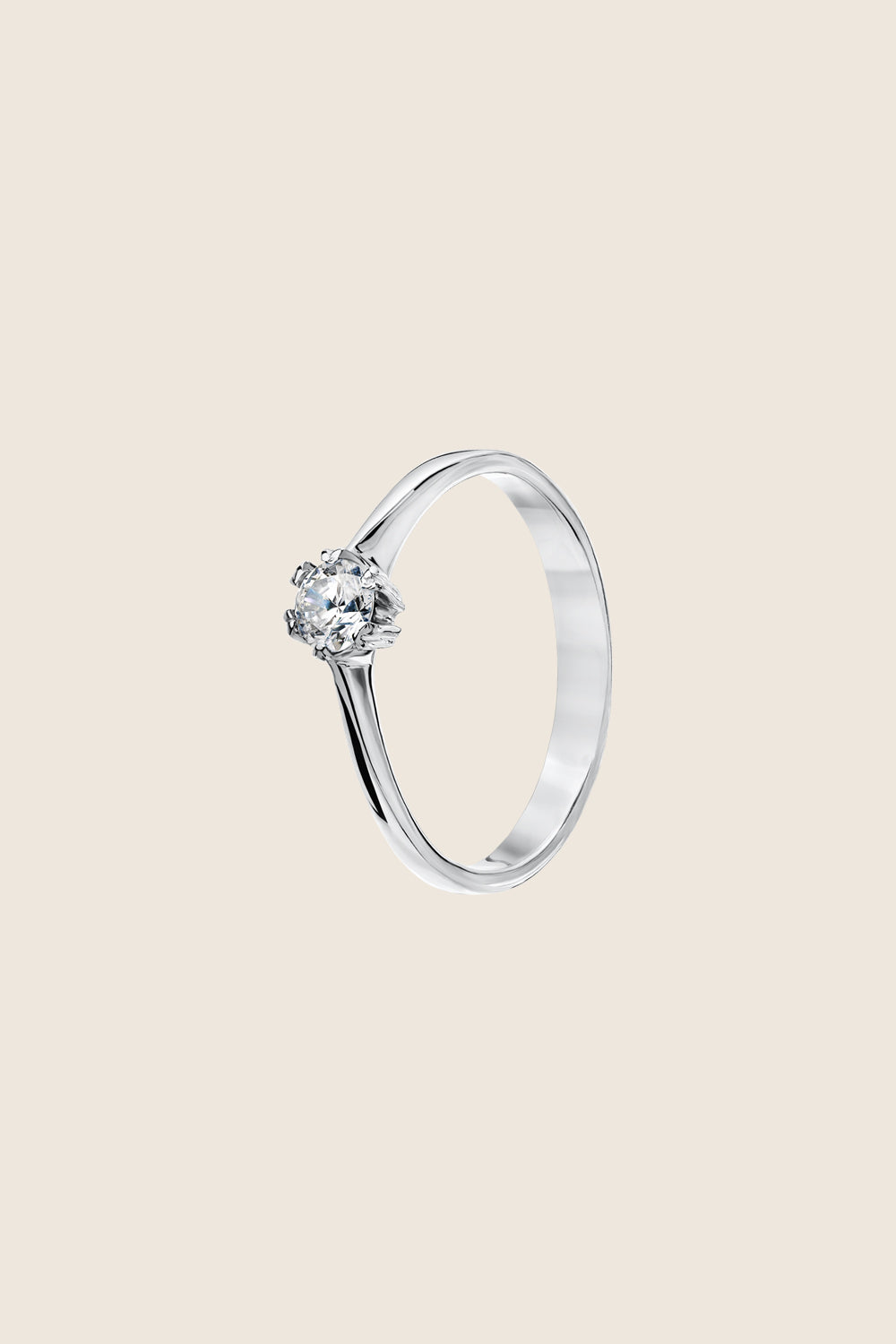 Prosty, a zarazem elegancki pierścionek z brylantem o masie 0,160 ct. Minimalistyczna oprawa doskonale eksponuje piękno i blask kamienia, podkreślając jego wyjątkowy charakter. Idealny wybór dla osób ceniących klasyczną elegancję i wyrafinowany styl.