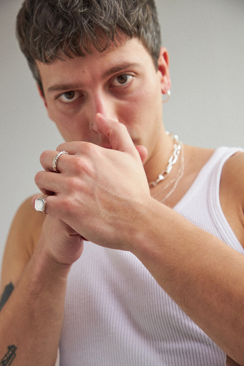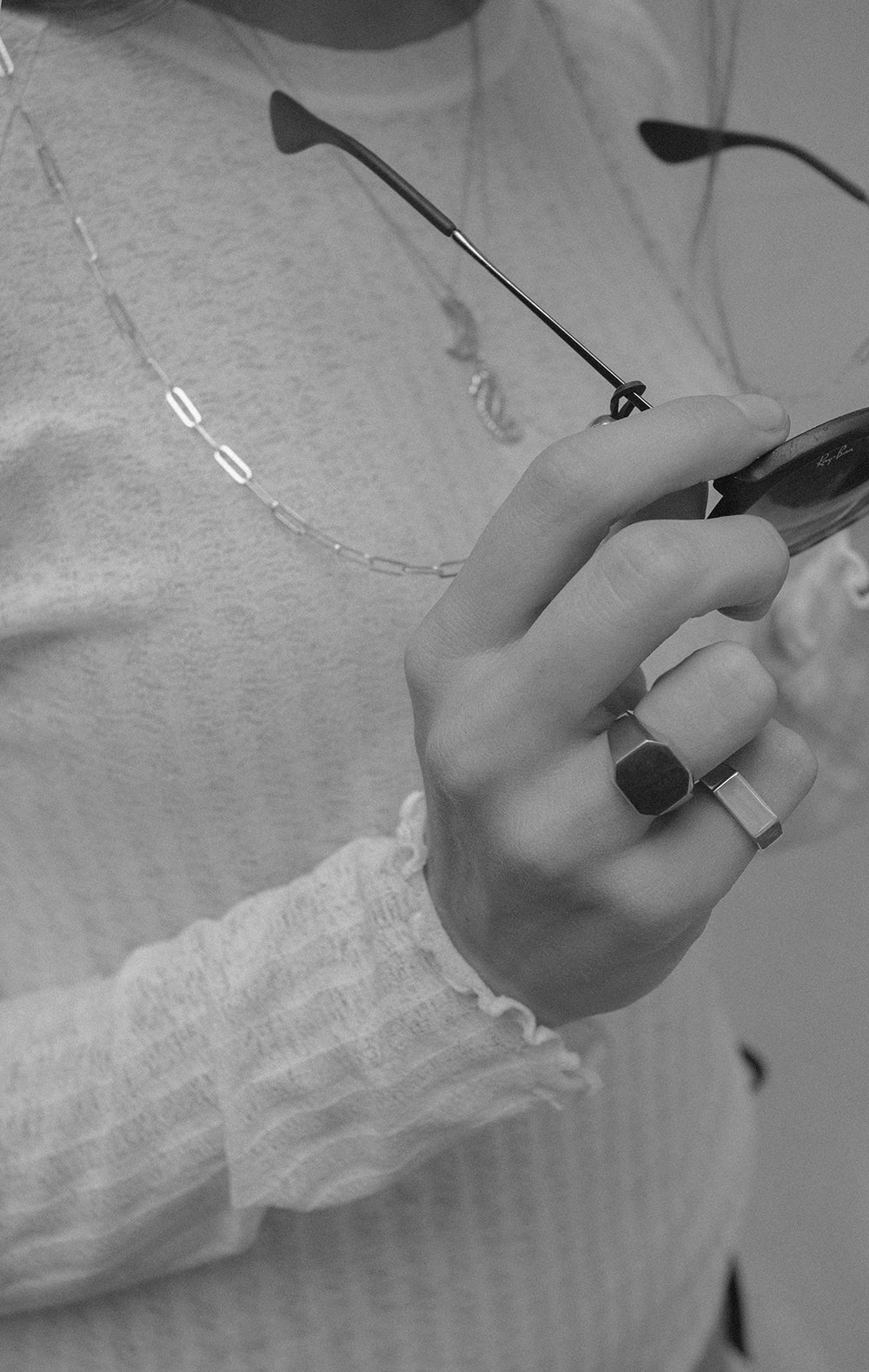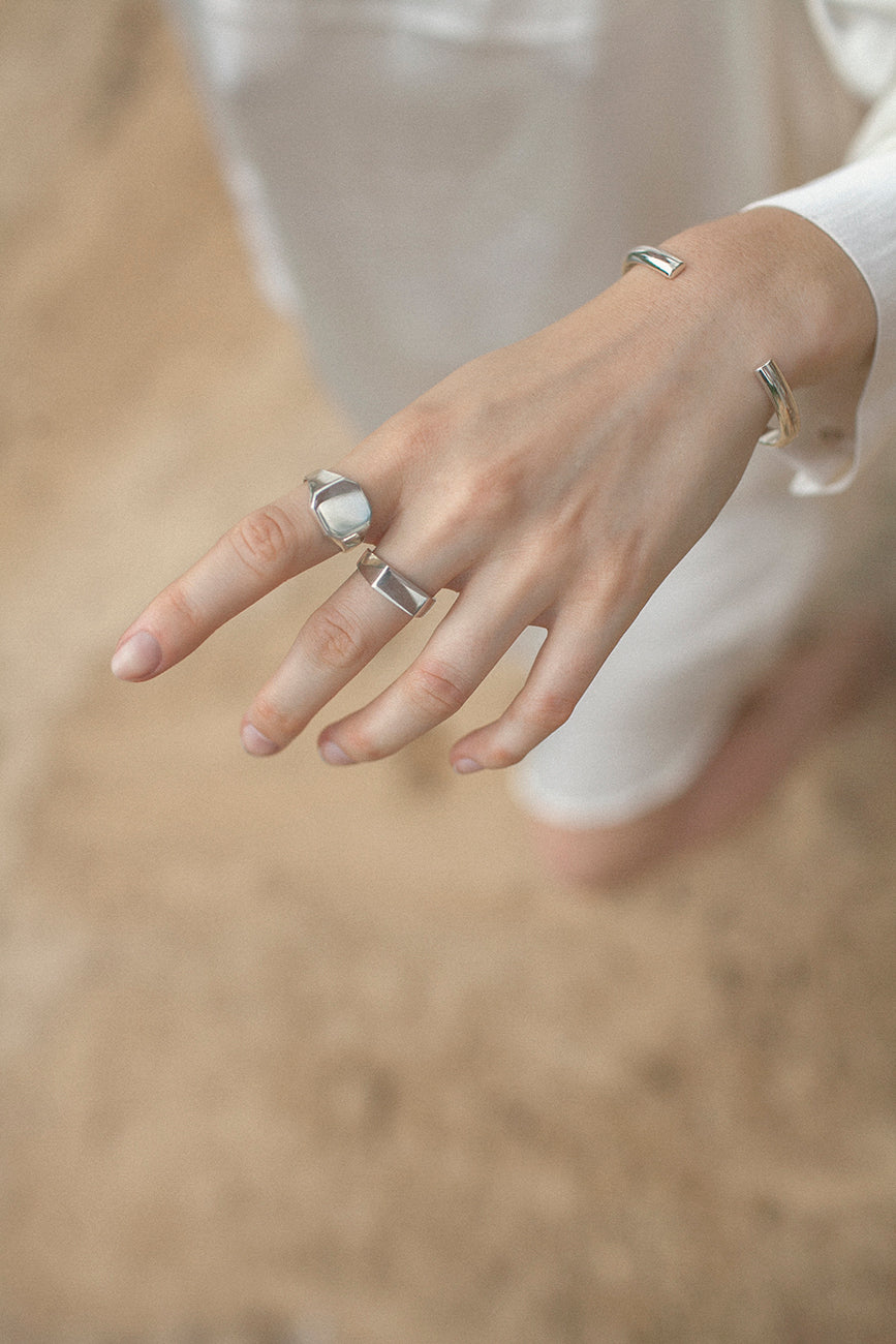 Prosty sygnet w kształcie kwadratu ze ściętymi narożnikami. Gładka powierzchnia nadaje całości minimalistyczny, elegancki wyraz. Model uniseksowy – świetnie wygląda zarówno na damskiej, jak i męskiej dłoni. Wymiary lustra: 12 x 12 mm. Idealny dla osób ceniących nowoczesny design i ponadczasową elegancję.